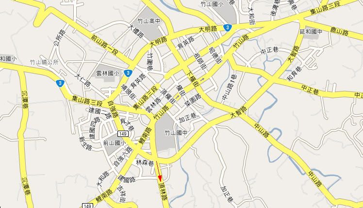 由台3線往竹山方向,遇大智路左轉,直行至頂林路(投49)左轉,自進入頂林路後,
